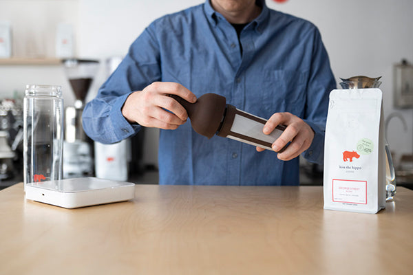 Weigh 55 grams of coffee and grind on a coarse setting.