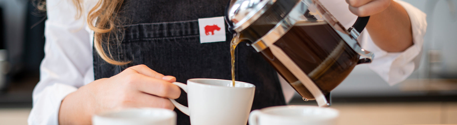 Start the timer and add 500g water just off the boil. Stir gently and place the plunger on top, but don’t press yet to maintain the heat in the vessel.